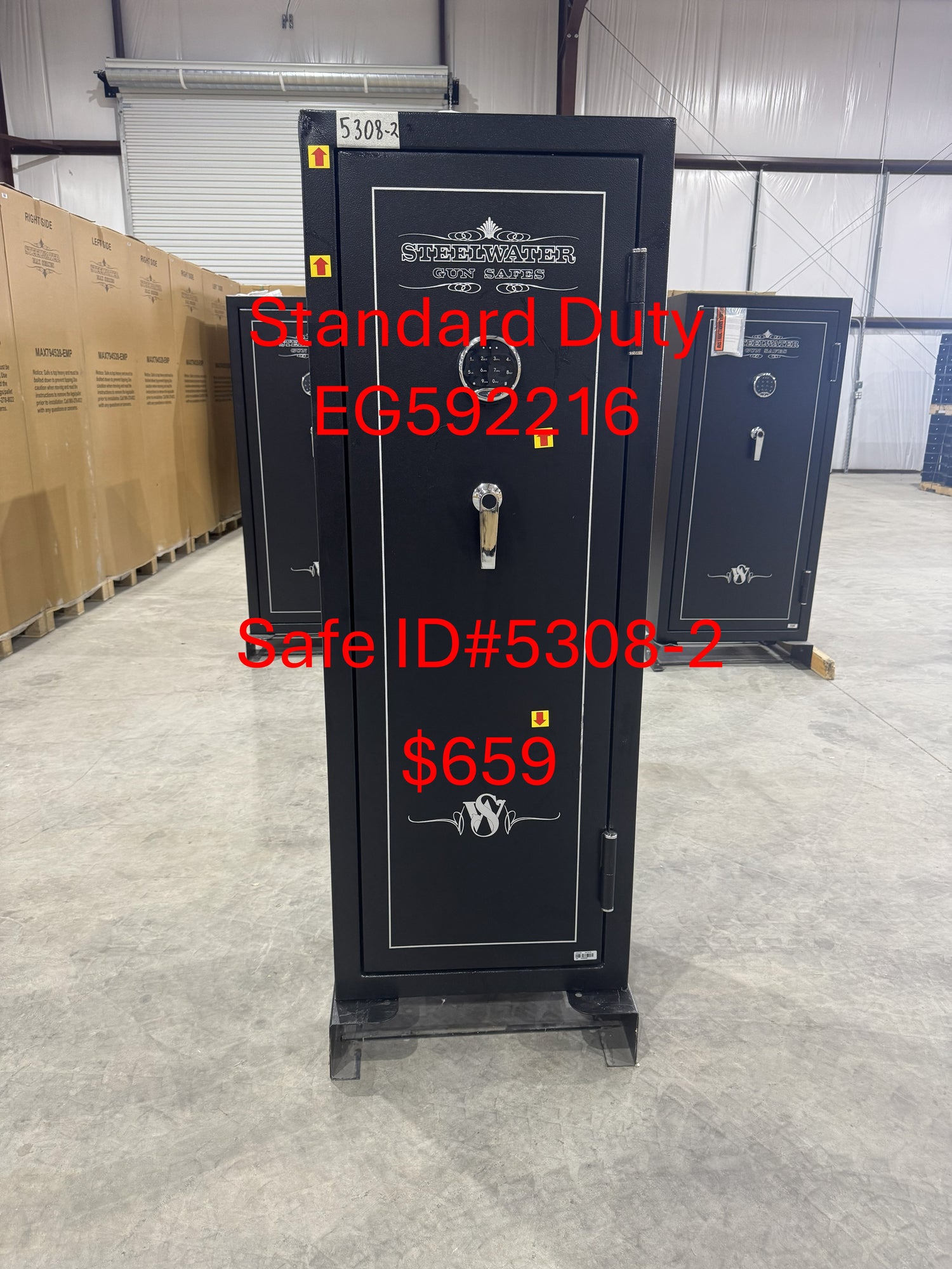 Save up to 50% on our Scratch and Dent safes. These safes are sold as new with full warranty and have never been used or under ownership of a buyer. They have been damaged while in transit to our location, to a buyers location, or while in our warehouse. The damages are only cosmetic and does not affect the reliability, security, or the fireproofing of the safe. Please NOTE: The pricing DOES NOT INCLUDE SHIPPING. Call or email us with the Safe ID Number and the zip code where the safe will be delivered to and we will advise you of the shipping cost. Shipping averages $120 to $400 depending on location and weight of the safe. Email us at Sales@steelwatergunsafes.com or call us Mon-Fri between 8:30 to 4:40 Eastern time. tel:8662788022