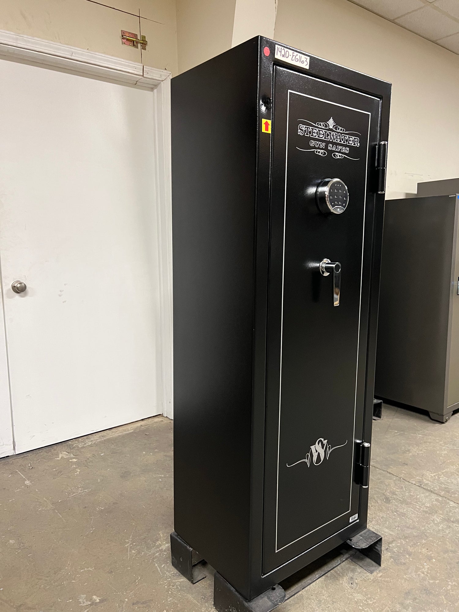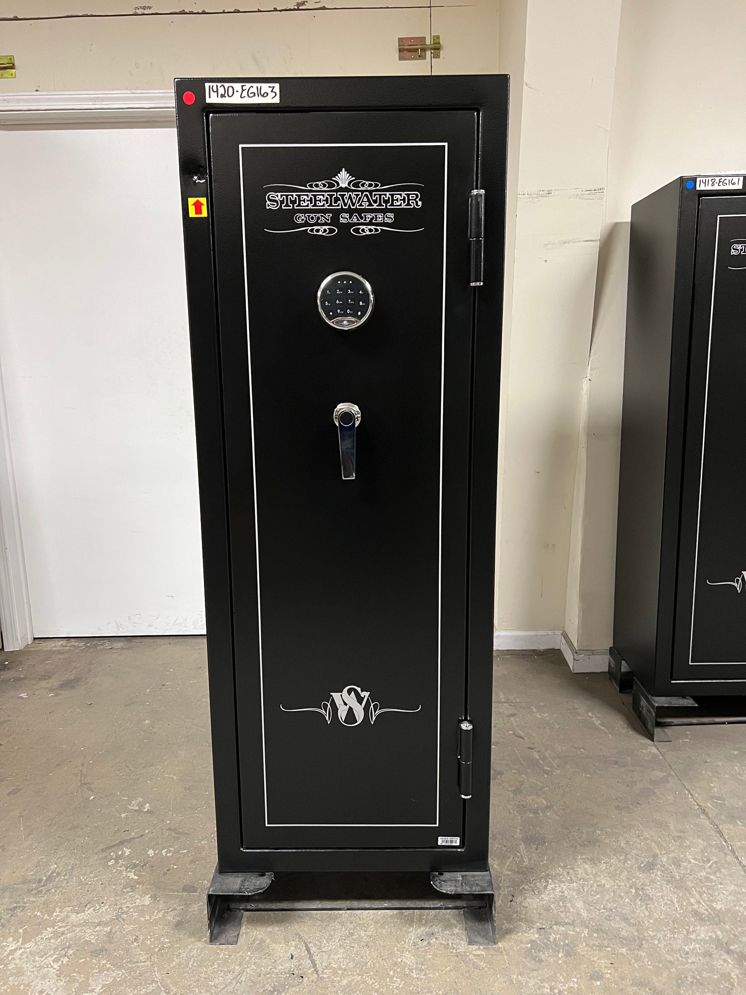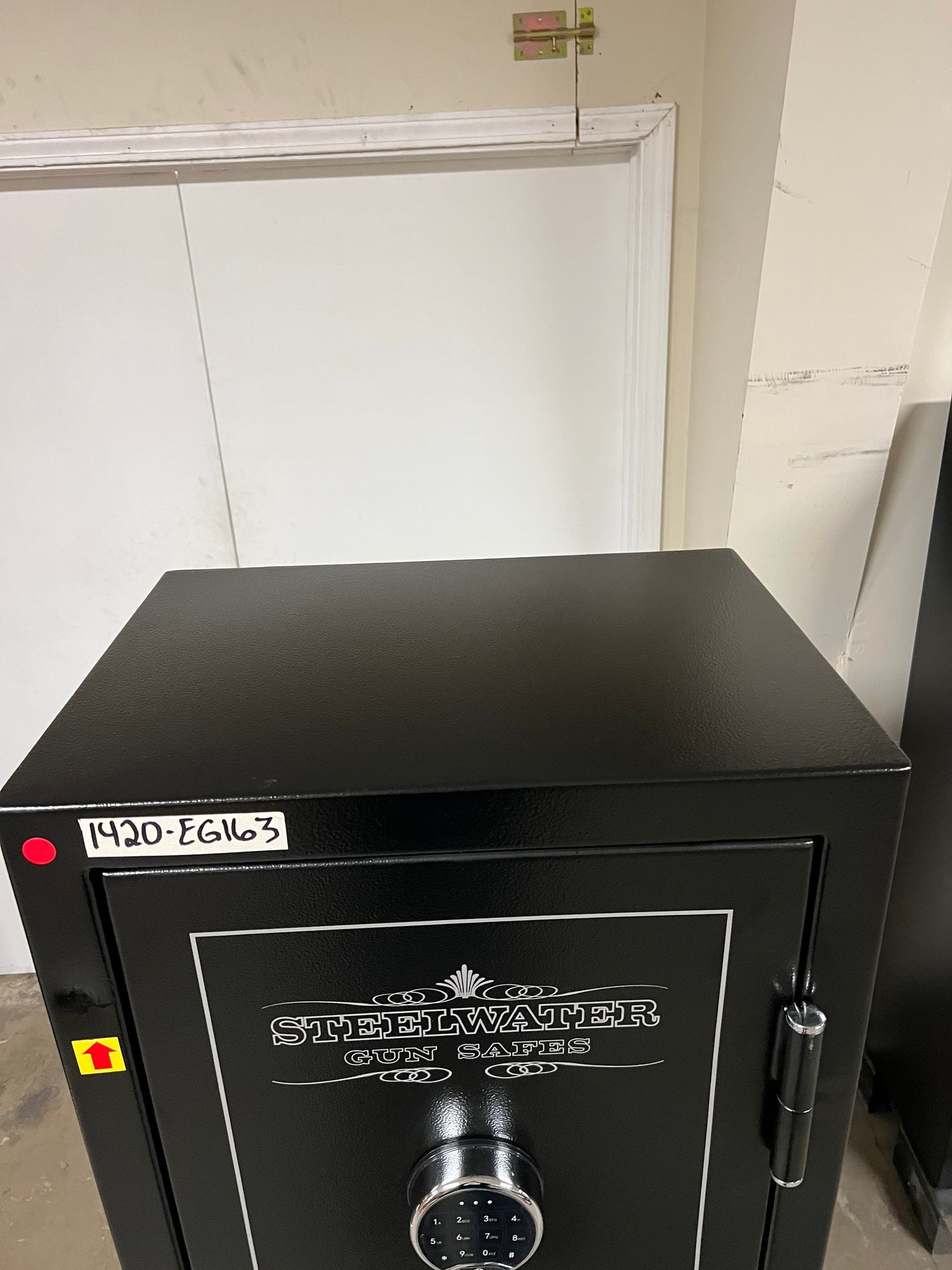 “RED ARROWS” will indicate the most noticeable dents/scratches on the exterior sides of the safe but please note that there may be some smaller imperfections that do not show up in pictures well and not pointed out with the “RED ARROWS”. The bottom of the safe may have scratches/dents due to moving the safe during inspection that will not affect the security, fireproofing, or integrity of the safe.