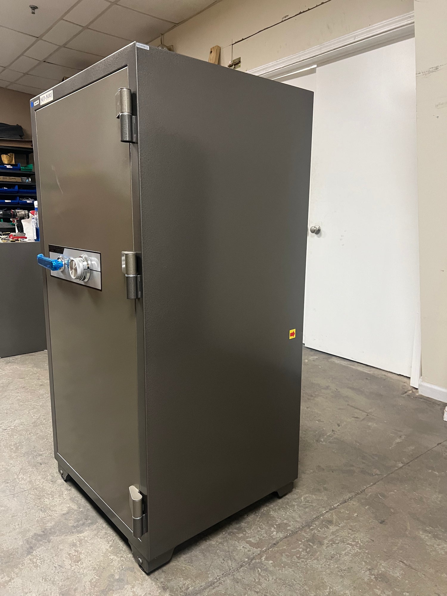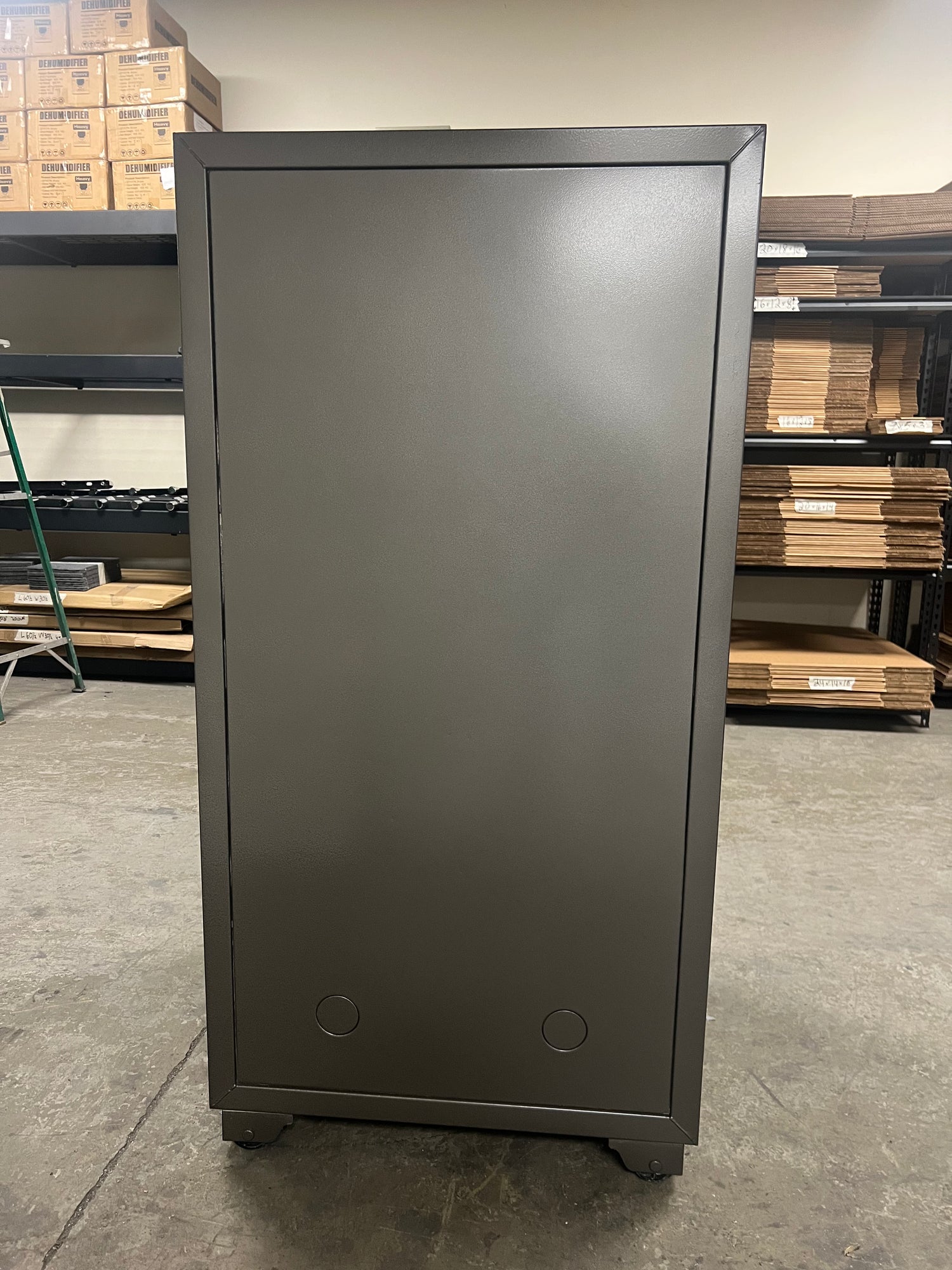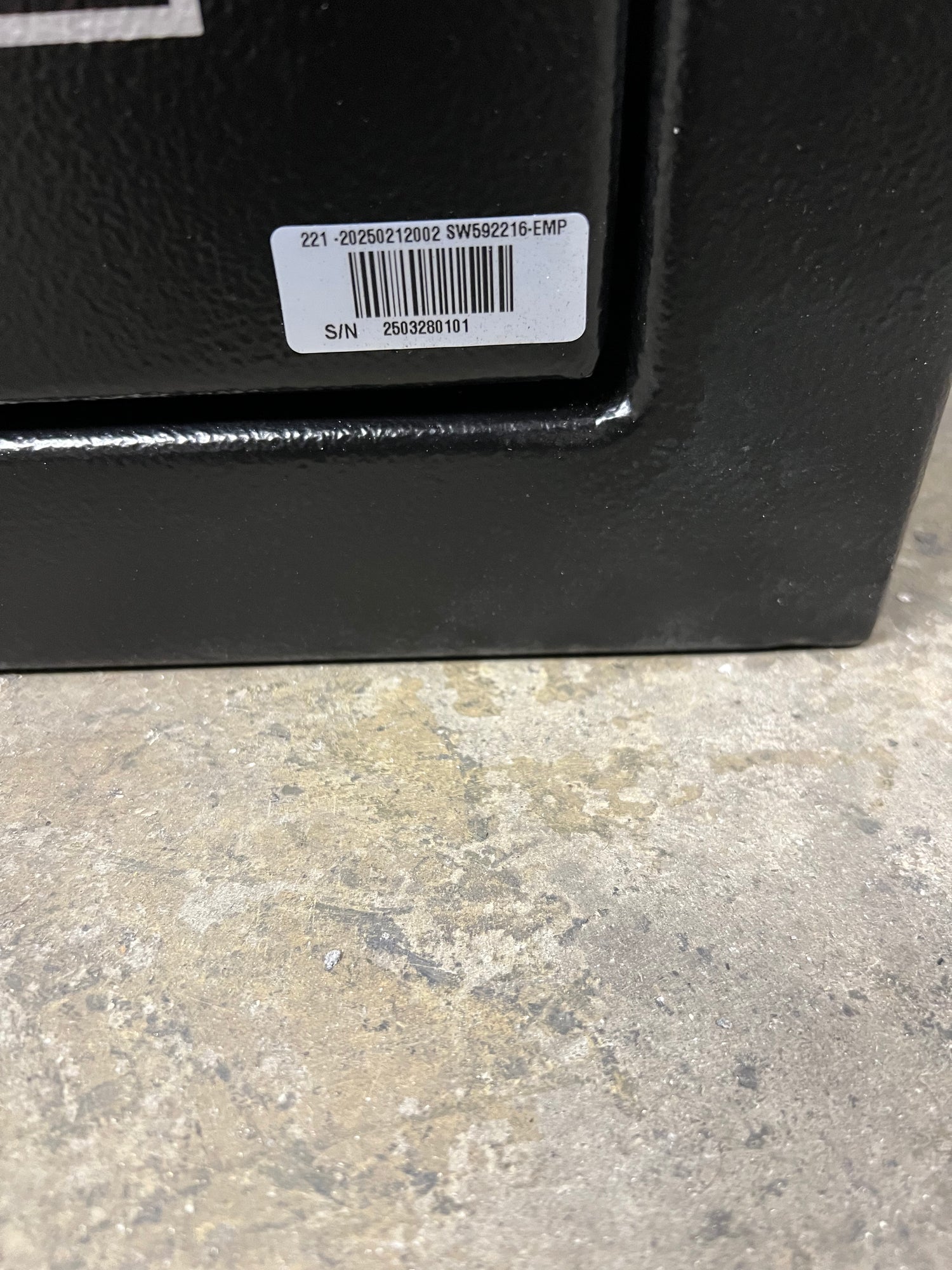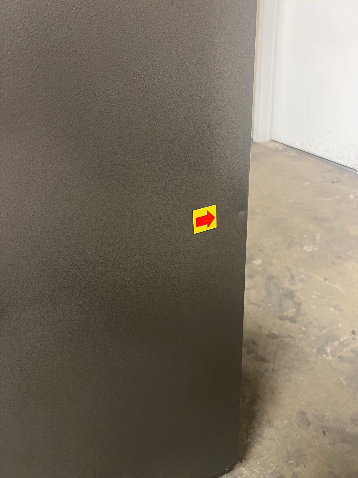 “RED ARROWS” will indicate the most noticeable dents/scratches on the exterior sides of the safe but please note that there may be some smaller imperfections that do not show up in pictures well and not pointed out with the “RED ARROWS”. The bottom of the safe may have scratches/dents due to moving the safe during inspection that will not affect the security, fireproofing, or integrity of the safe.