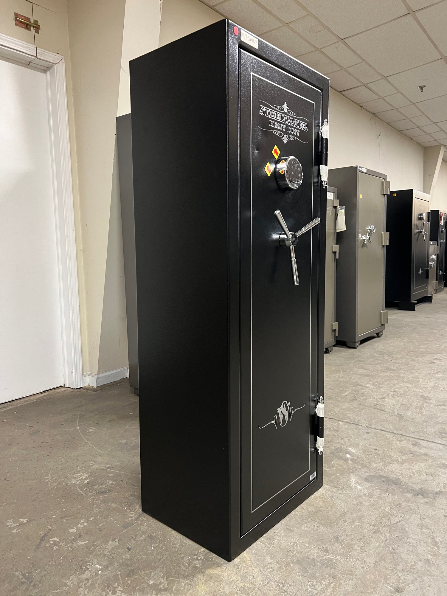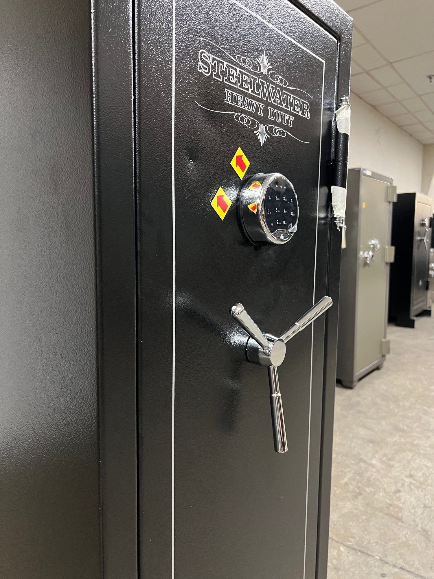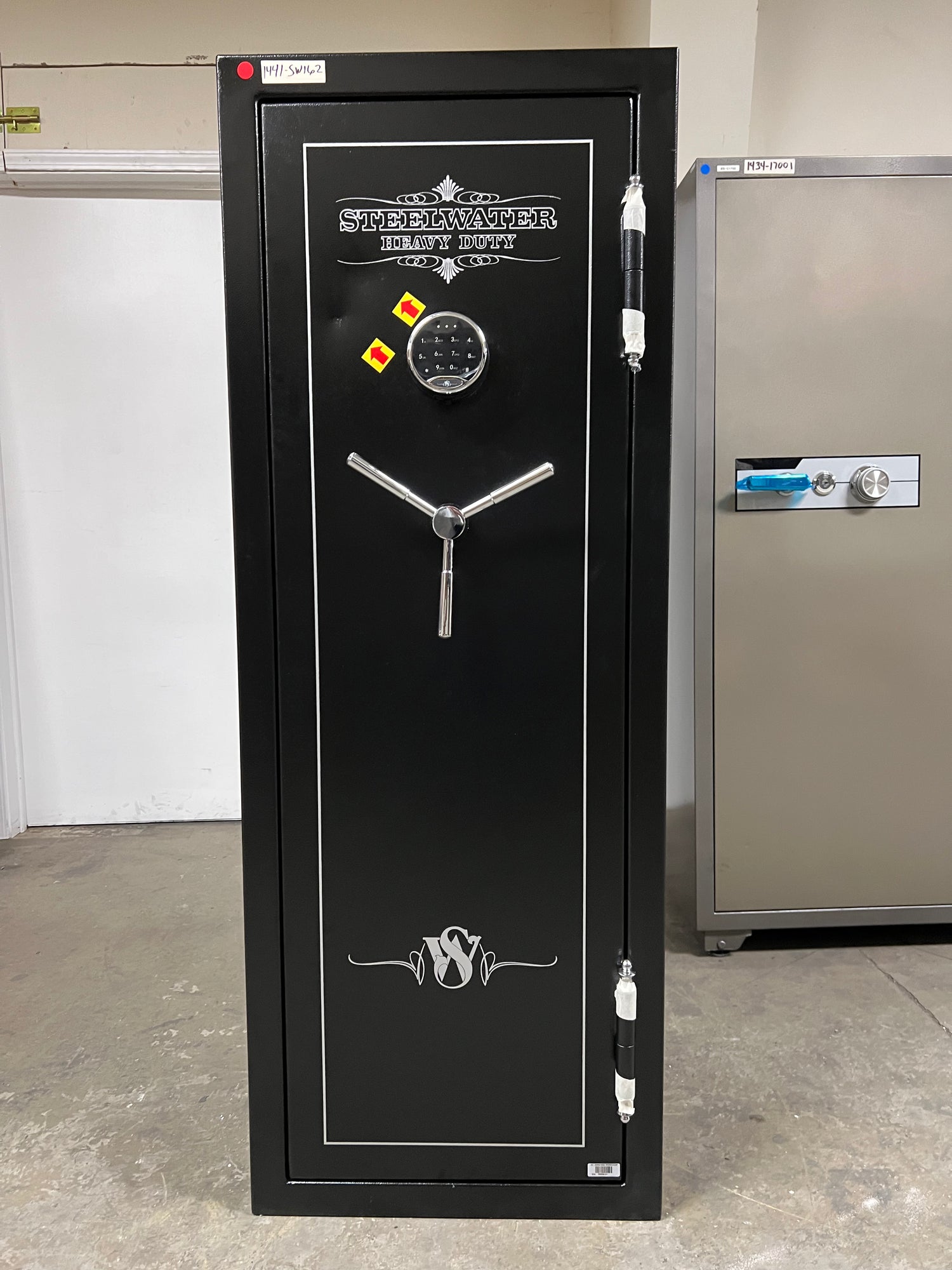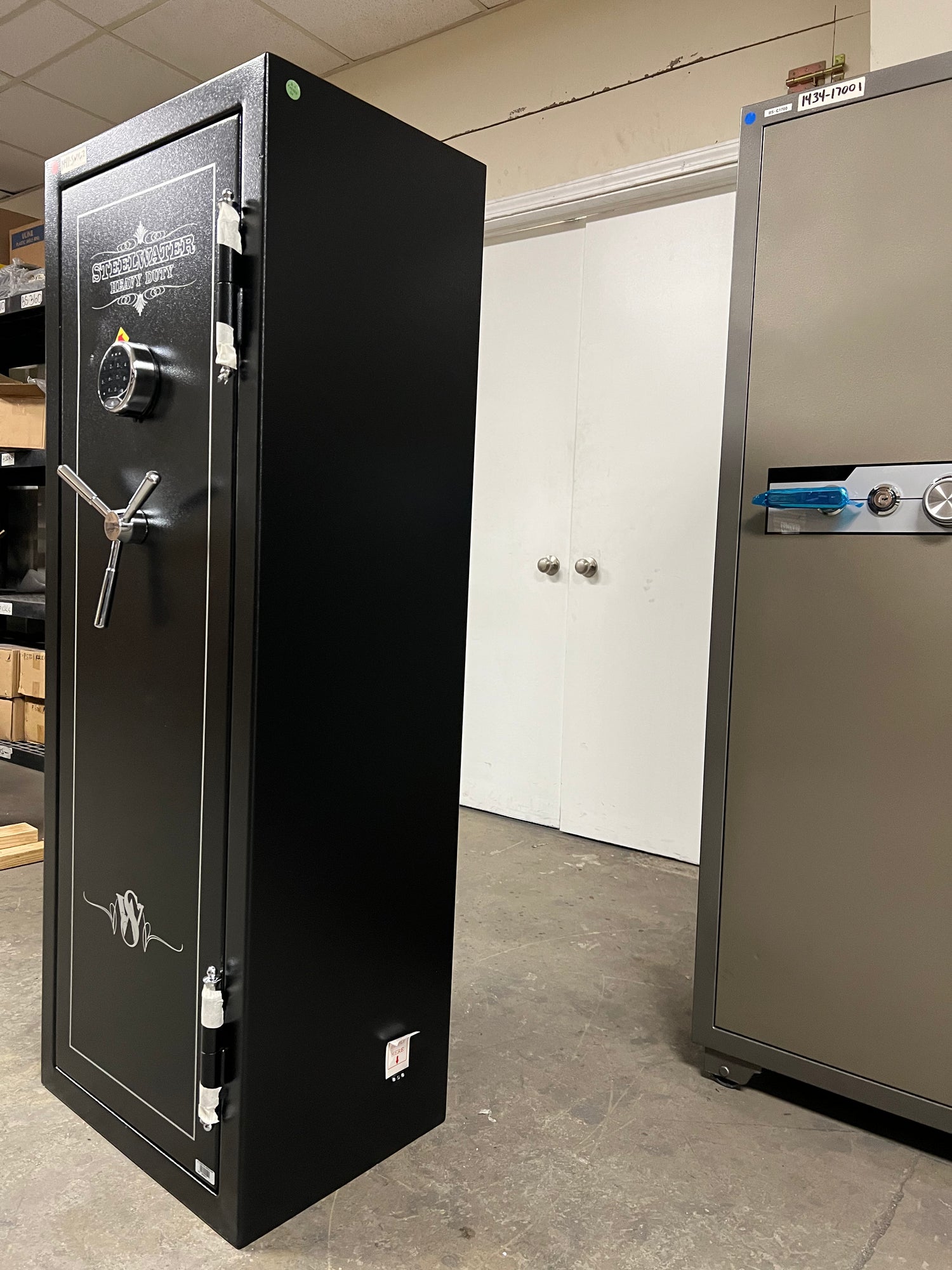 “RED ARROWS” will indicate the most noticeable dents/scratches on the exterior sides of the safe but please note that there may be some smaller imperfections that do not show up in pictures well and not pointed out with the “RED ARROWS”. The bottom of the safe may have scratches/dents due to moving the safe during inspection that will not affect the security, fireproofing, or integrity of the safe.