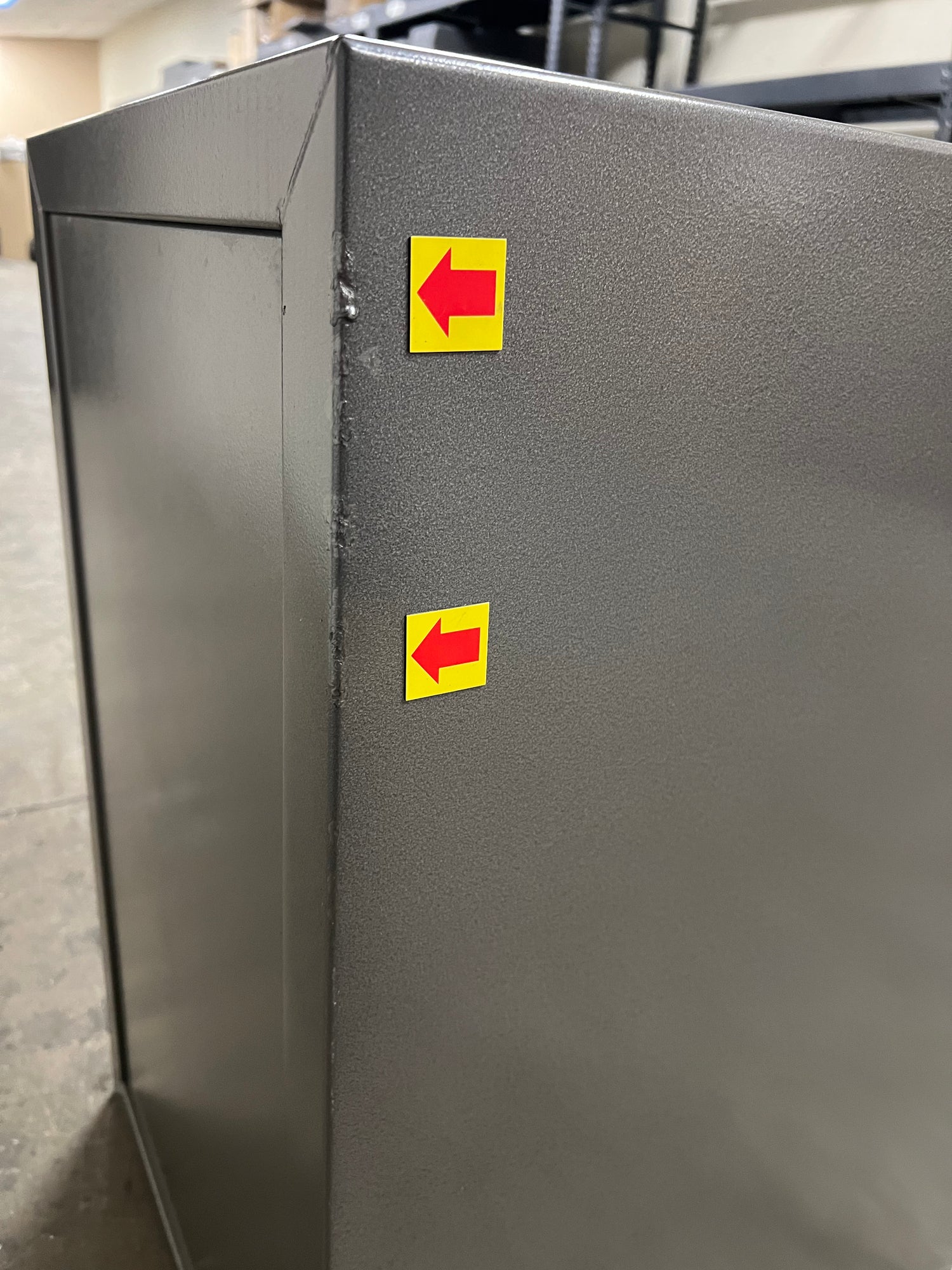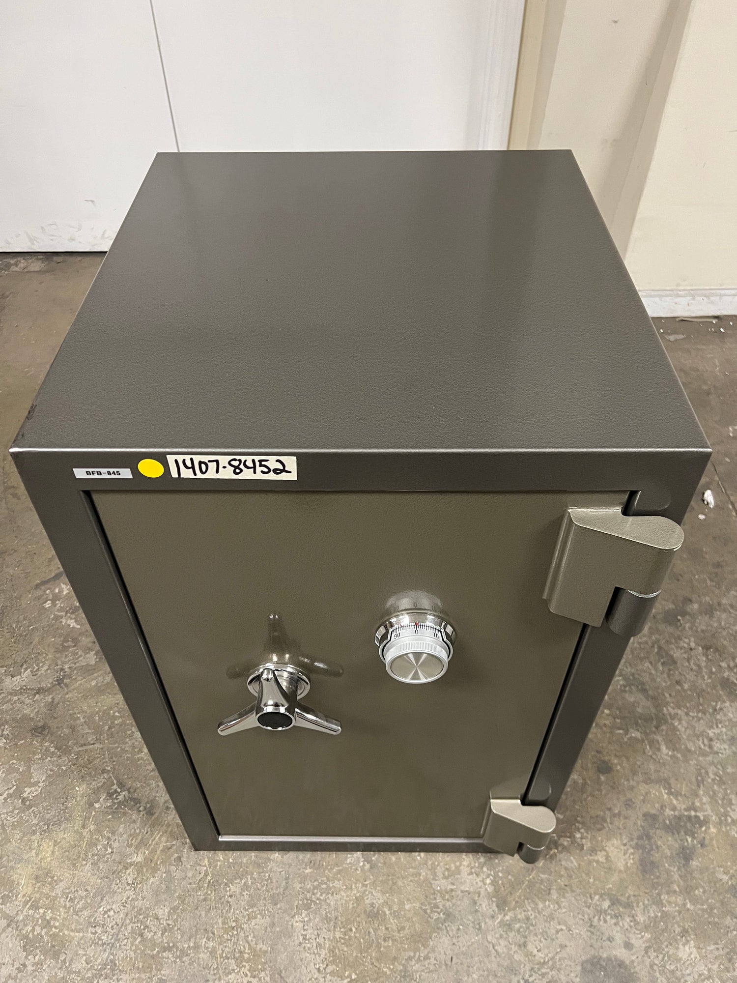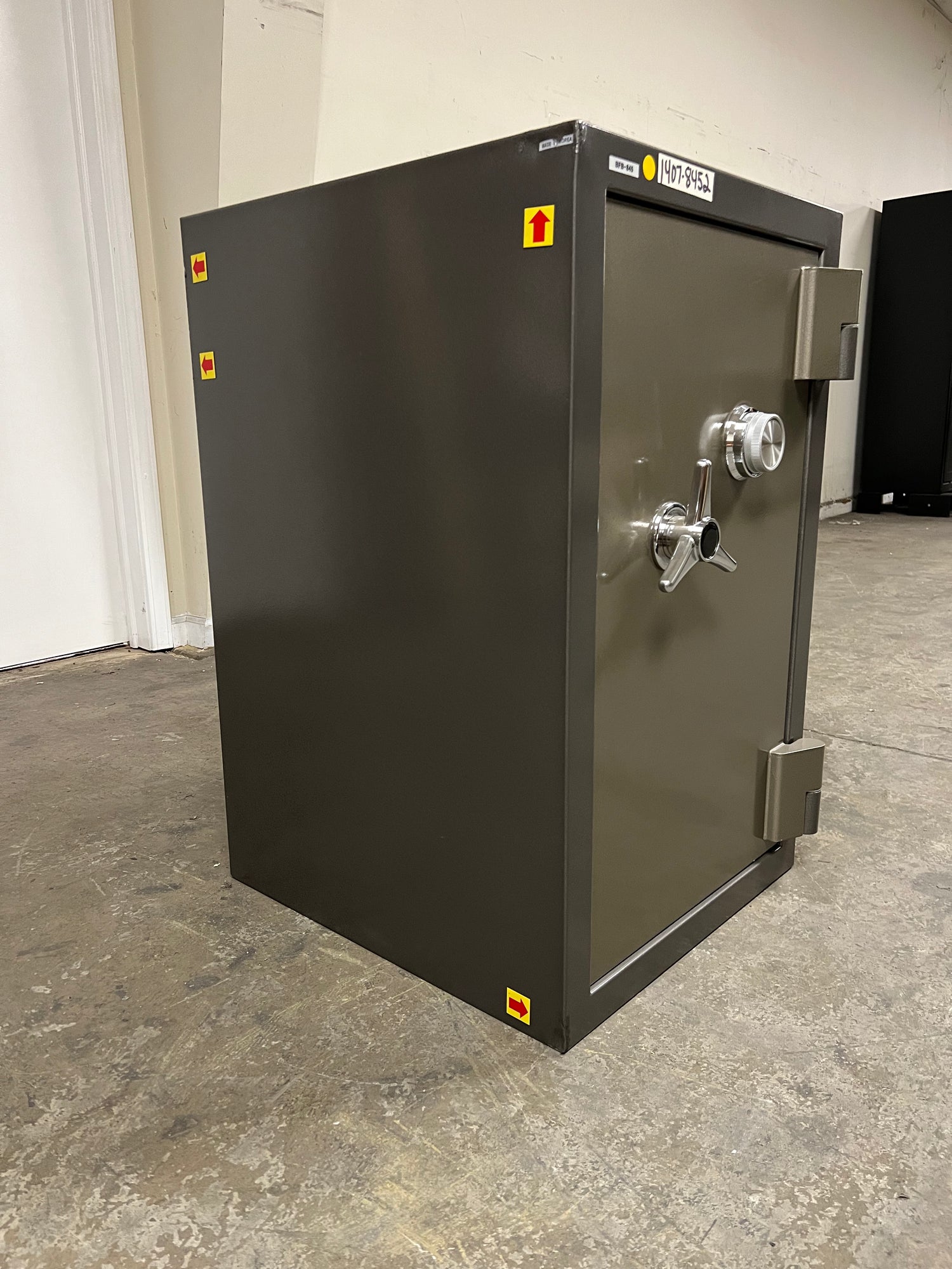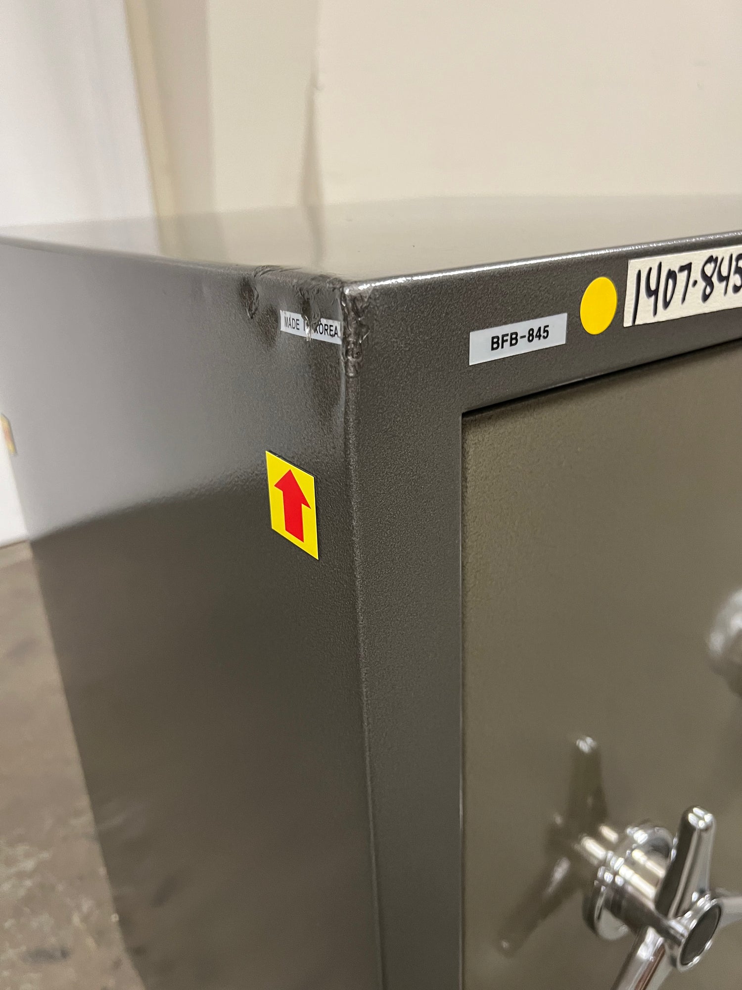 “RED ARROWS” will indicate the most noticeable dents/scratches on the exterior sides of the safe but please note that there may be some smaller imperfections that do not show up in pictures well and not pointed out with the “RED ARROWS”. The bottom of the safe may have scratches/dents due to moving the safe during inspection that will not affect the security, fireproofing, or integrity of the safe.