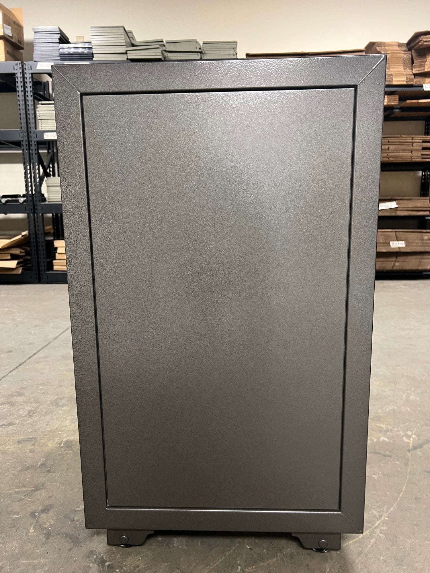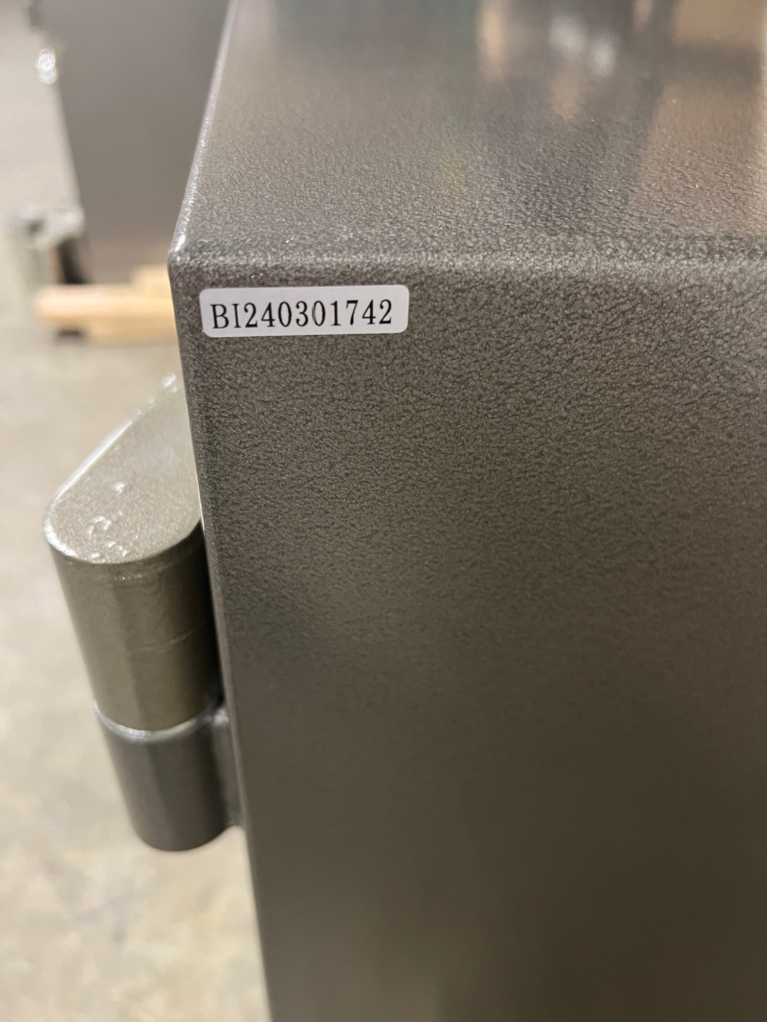 “RED ARROWS” will indicate the most noticeable dents/scratches on the exterior sides of the safe but please note that there may be some smaller imperfections that do not show up in pictures well and not pointed out with the “RED ARROWS”. The bottom of the safe may have scratches/dents due to moving the safe during inspection that will not affect the security, fireproofing, or integrity of the safe.