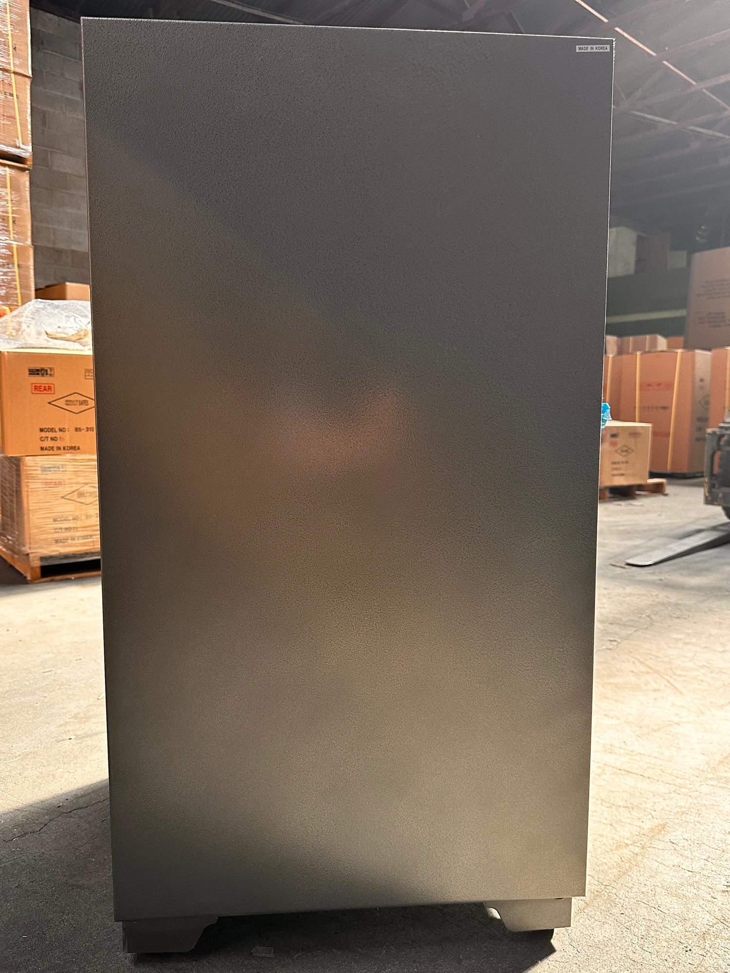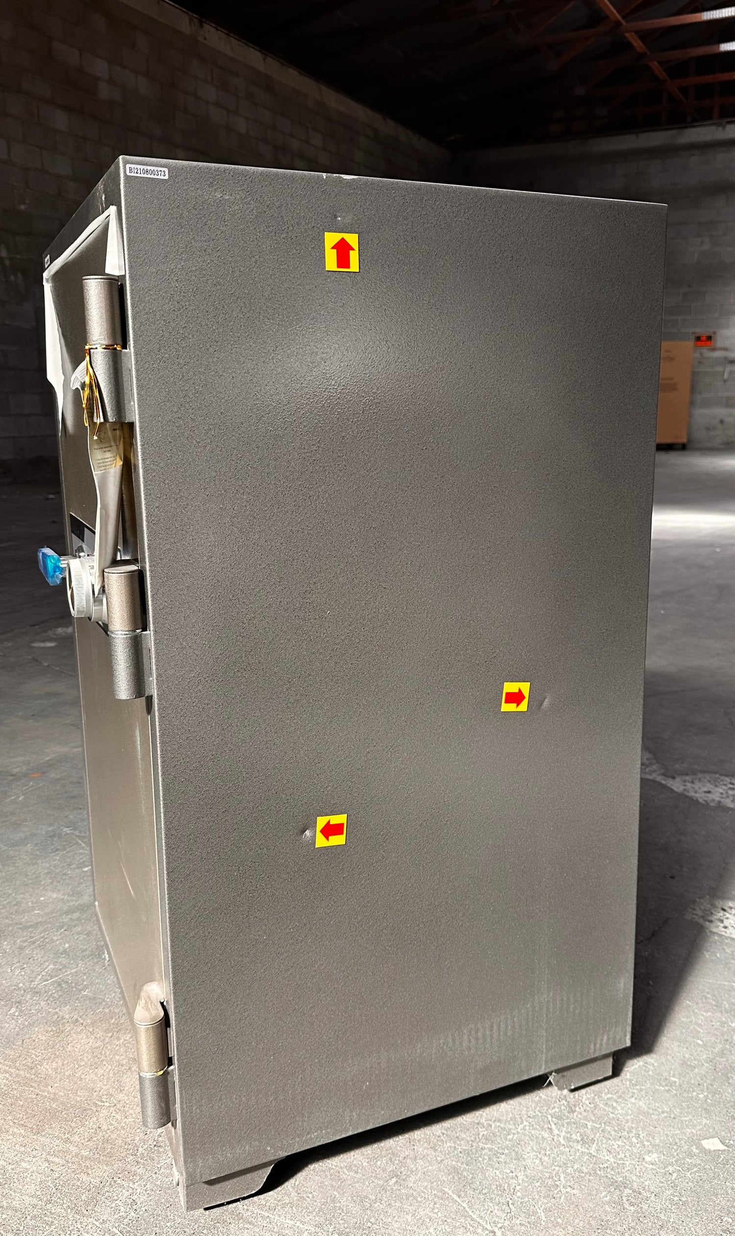 “RED ARROWS” will indicate the most noticeable dents/scratches on the exterior sides of the safe but please note that there may be some smaller imperfections that do not show up in pictures well and not pointed out with the “RED ARROWS”. The bottom of the safe may have scratches/dents due to moving the safe during inspection that will not affect the security, fireproofing, or integrity of the safe.